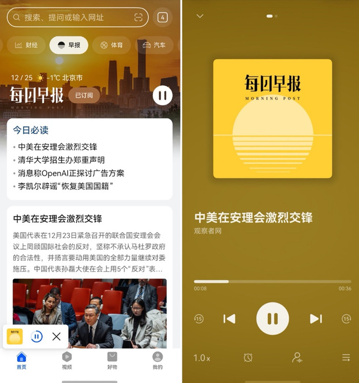例如,华为浏览器独有的早报频道,提供“可看可听”的资讯播报服务,无论是晨起洗漱、通勤乘车,还是运动健身时,用户都可以通过听早报方式更便捷地获取每日新鲜资讯,还可以根据自己的喜好,选择心仪的播报音色或调整合适倍速播报。